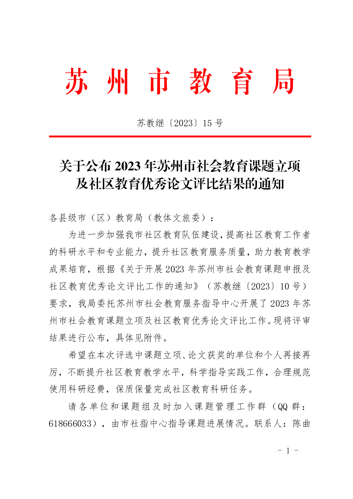 喜报!我校教师在2023 年苏州市社区教育优秀论文评比中获奖!