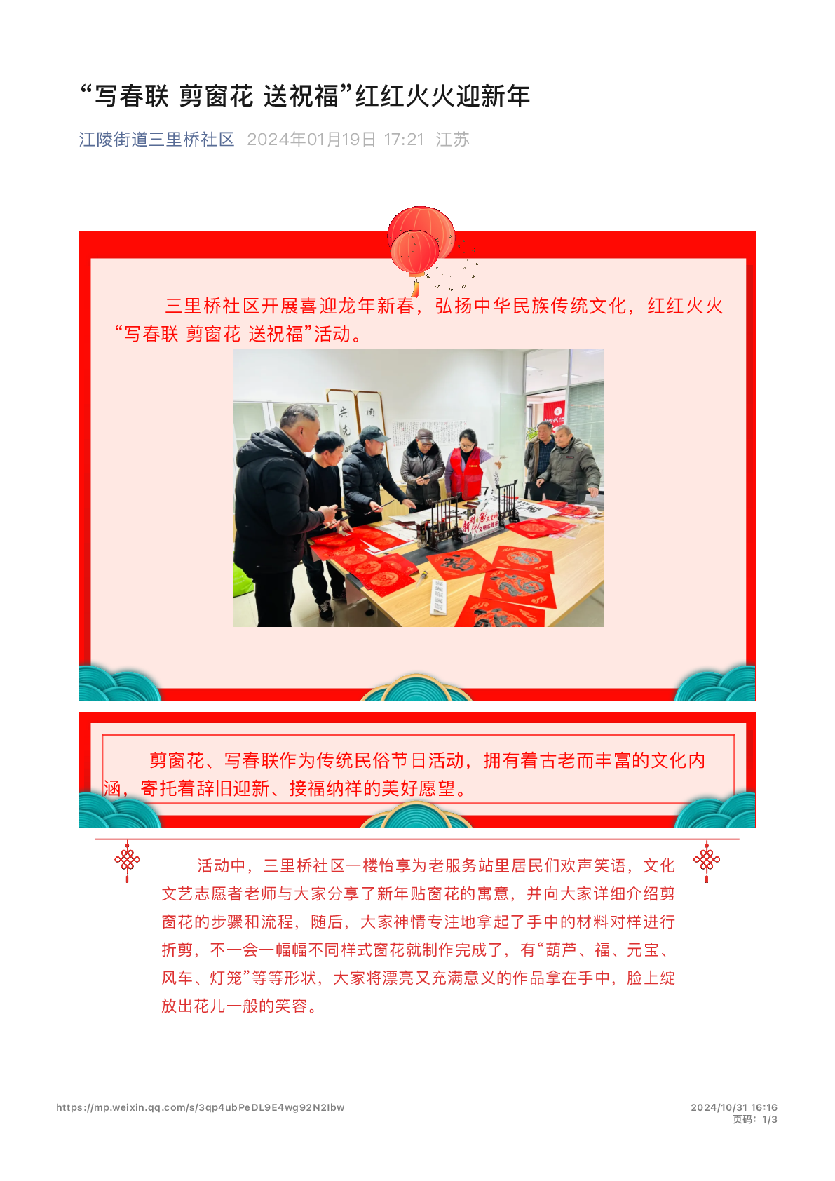 [转载]三里桥社区|“写春联 剪窗花 送祝福”红红火火迎新年