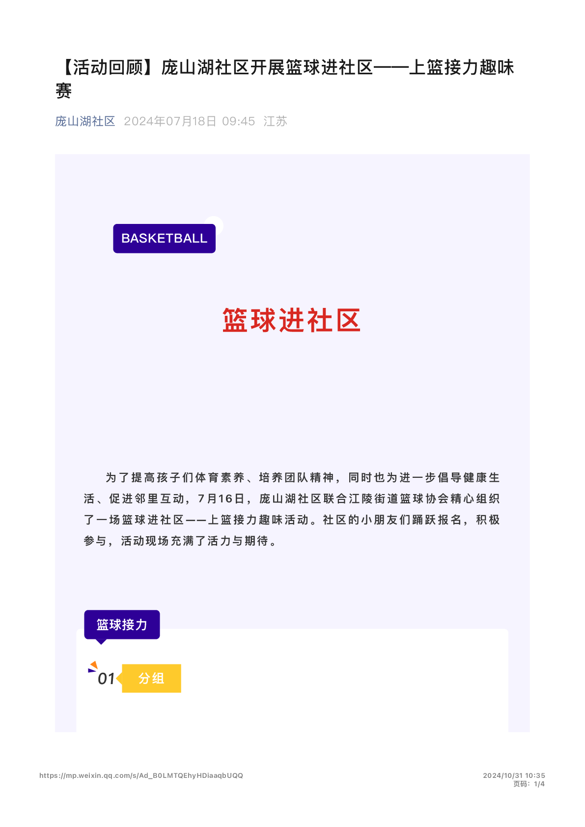 [转载]庞山湖社区|开展篮球进社区——上篮接力趣味赛