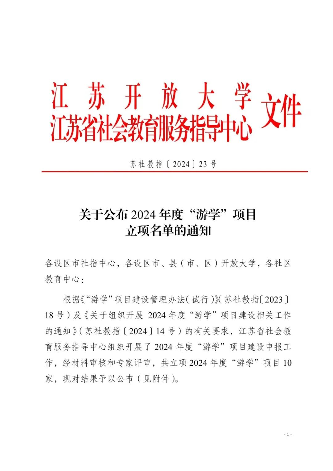日前,江苏省社会教育服务指导中心组织开展了2024 年度“游学”项目建设申报工作,经材料审核和专家评审,确定10个立项项目。由同里镇成人教育中心和同里国家湿地公园共同建设的“亲近自然 乐享四季”游学项目成功入选!