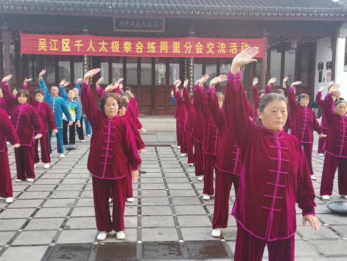 据悉,在吴江区太极拳协会的引领下,每年在11月上旬,第一个星期六为纪念邓小平题词“太极拳好”当日,全区各镇组织太极爱好者开展千人太极拳合练活动,这一活动已持续20多个年头。这是吴江区全民开展太极拳合练来强身健体的一大特色品牌,得到了全区广大太极爱好者的积极参与,充分彰显了太极拳的风釆和魅力,践行了“我参与、我健康、我快乐”的全民健身理念。