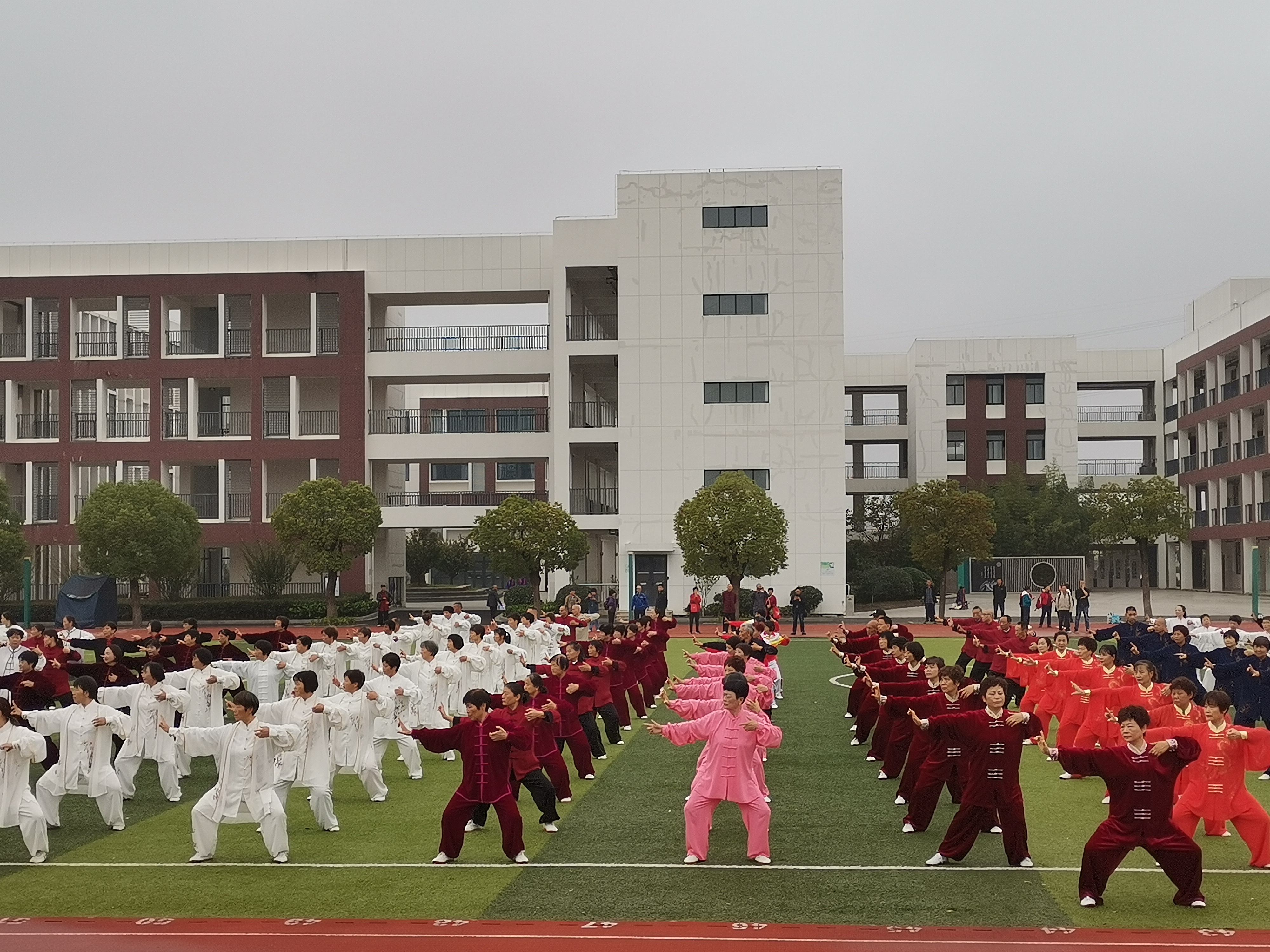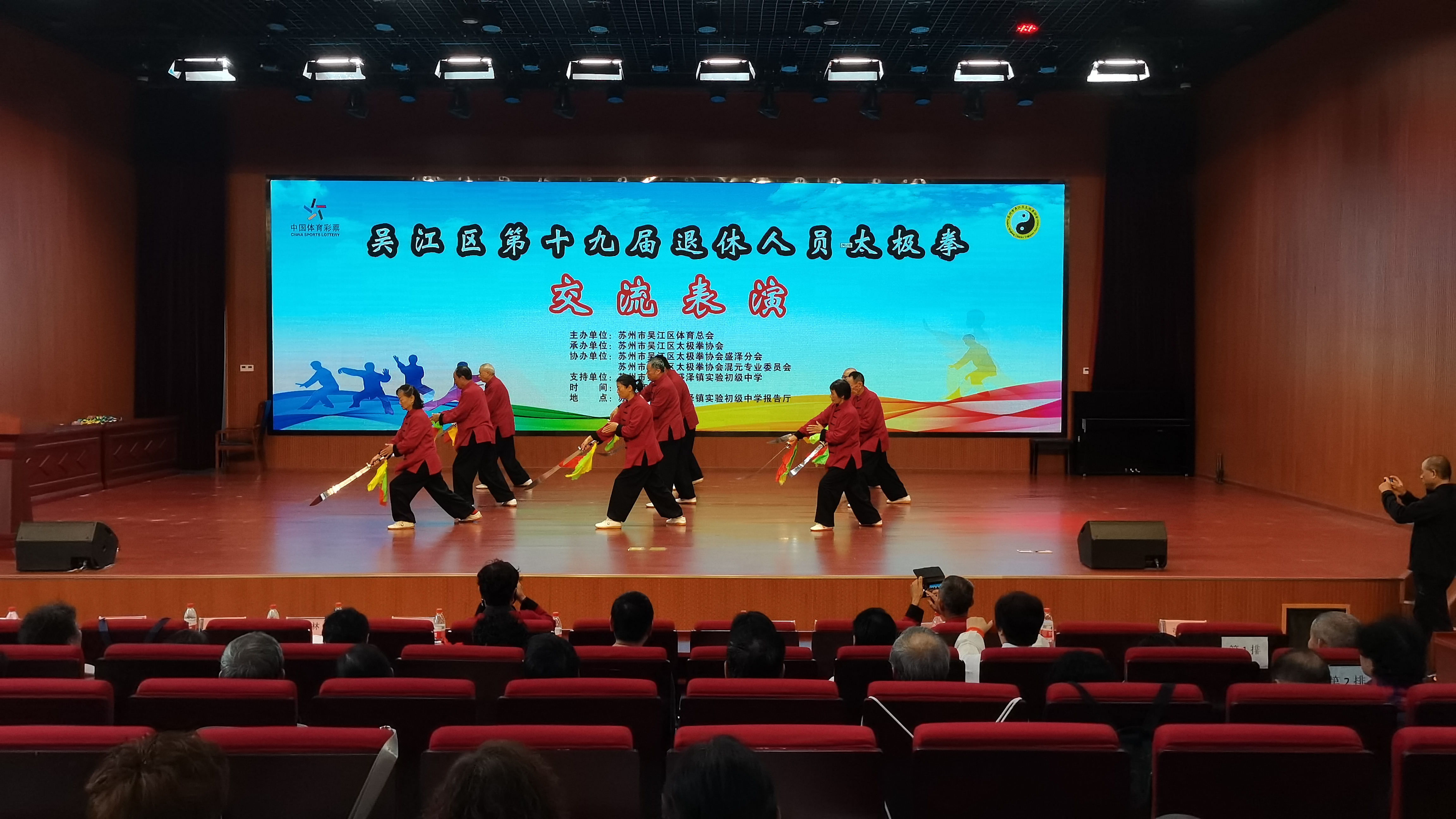 秋风送爽、硕果盈枝。11月16日上午,同里社区教育中心的崧泽太极养生会学共体组建两支团队共19名骨干一同前往盛泽镇实验初级中学,参加了2024吴江区第十九届退休人员太极拳(械)交流表演”活动。本次活动由吴江区体育总会主办、吴江区太极拳协会承办,吴江区太极拳协会盛泽分会、吴江区太极拳协会混元专业委员会协办,获得了盛泽镇实验初级中学的大力支持。