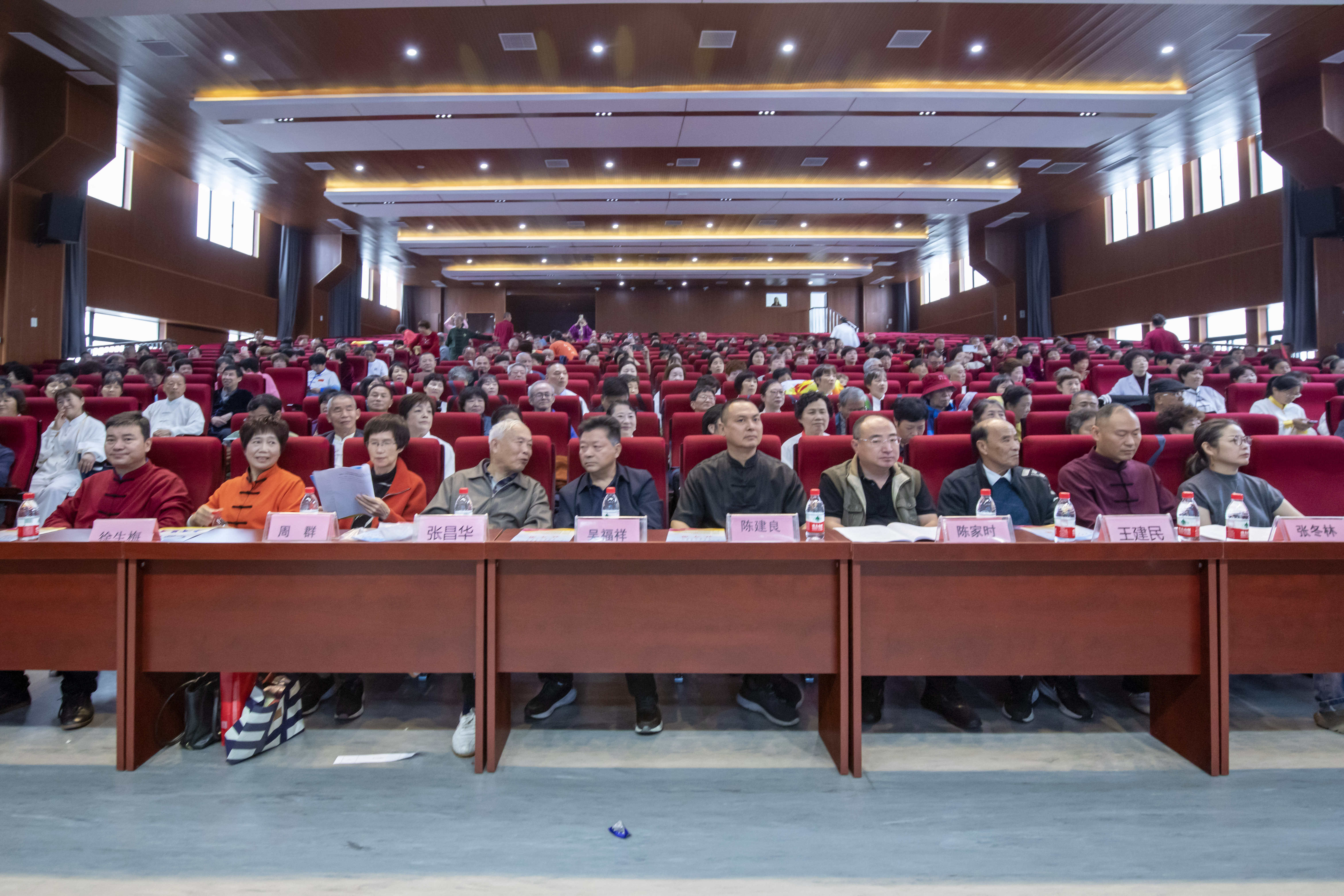上午8时30分许,来自全区各镇33支太极团队,共约370名太极爱好者,身穿靓丽的太极服,相聚在学校体育广场,排成大型方队,在音乐的伴奏下,全体队员合练了健身气功八段锦、24式简化太极拳,无人机进行了航拍摄影,场面气势壮观。合练结束,全体队员走进三楼演播报告大厅。9时15分,吴江区第十九届退休人员太极拳交流表演活动正式拉开帷幕。首先,由吴江区太极拳协会陈建良会长致开幕辞。吴江区有关部门领导出席了开幕仪式。