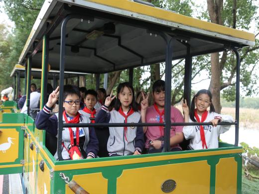 第一站:湿地之旅 不同于传统的课堂学习方式,当学生们踏入这片神奇的土地时,他们表现出了极大的兴趣和好奇心。自然老师首先带领大家进行了一次精彩的湿地巡游。乘坐小火车穿梭于森林之中,从澄湖文化区到银杏林再到香樟树园及草本植物园,让孩子们亲身感受到了同里湿地的独特魅力。