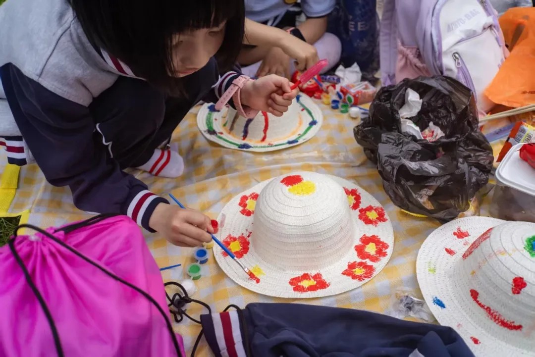 在手工创作区,孩子们将采集的落叶、野花变成艺术素材。他们专注地在草帽上作画,有的描绘候鸟翱翔,有的勾勒芦苇荡漾,每一笔都是对自然的告白。不一会儿,一顶顶充满湿地元素的创意草帽就诞生了,孩子们纷纷将湿地灵感“戴”在头上。