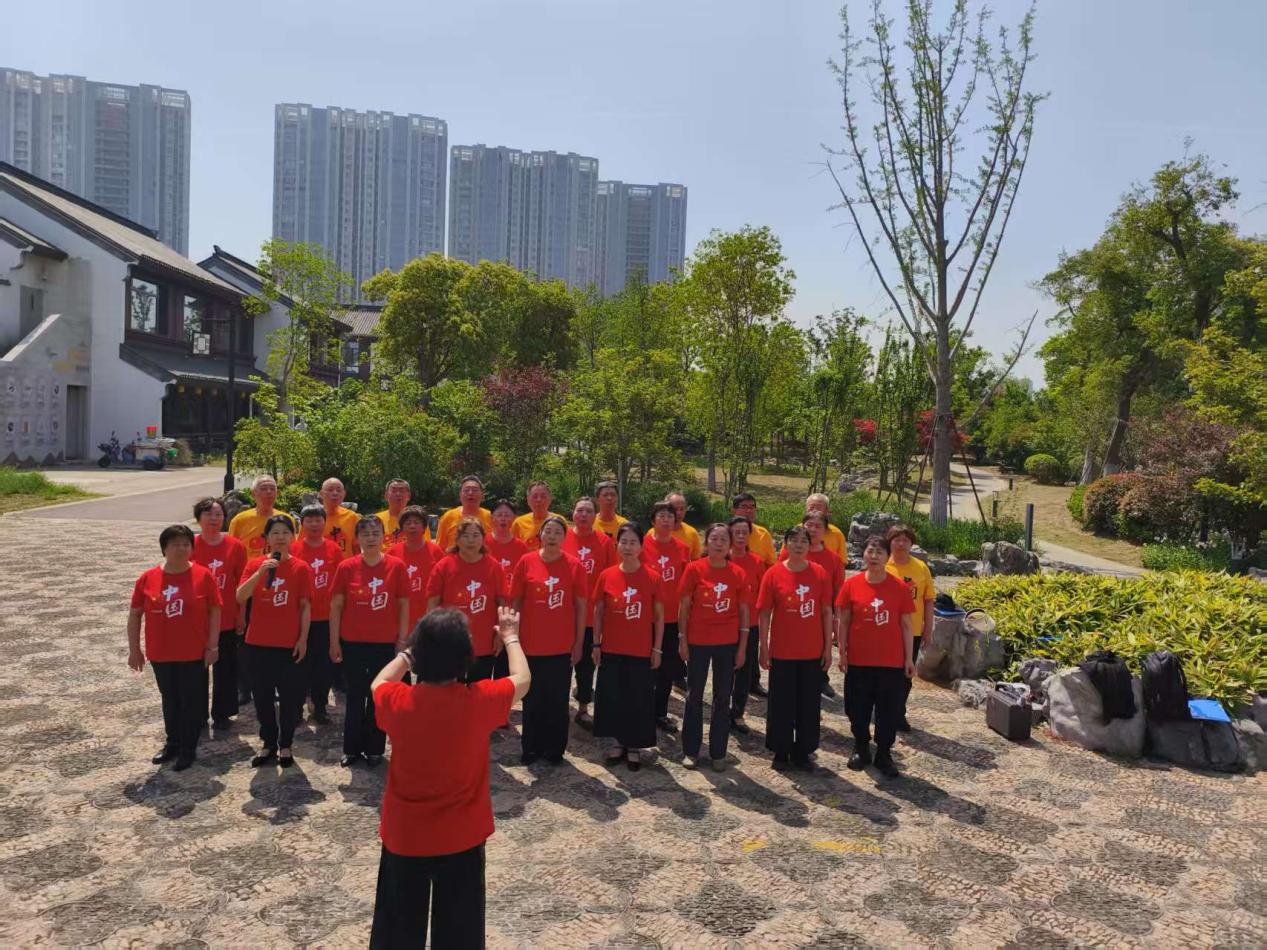 清晨的阳光洒在湖面上,波光粼粼。合唱团的成员们列队整齐,在老师的带领下,深情演绎了《歌唱祖国》等经典红歌。嘹亮的歌声在公园上空回荡,吸引了不少晨练的市民驻足欣赏。